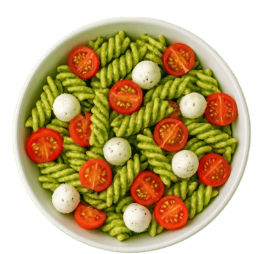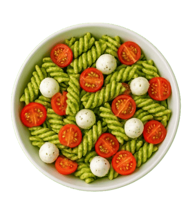 Fusilli al dente nappés d’un pesto basilic onctueux